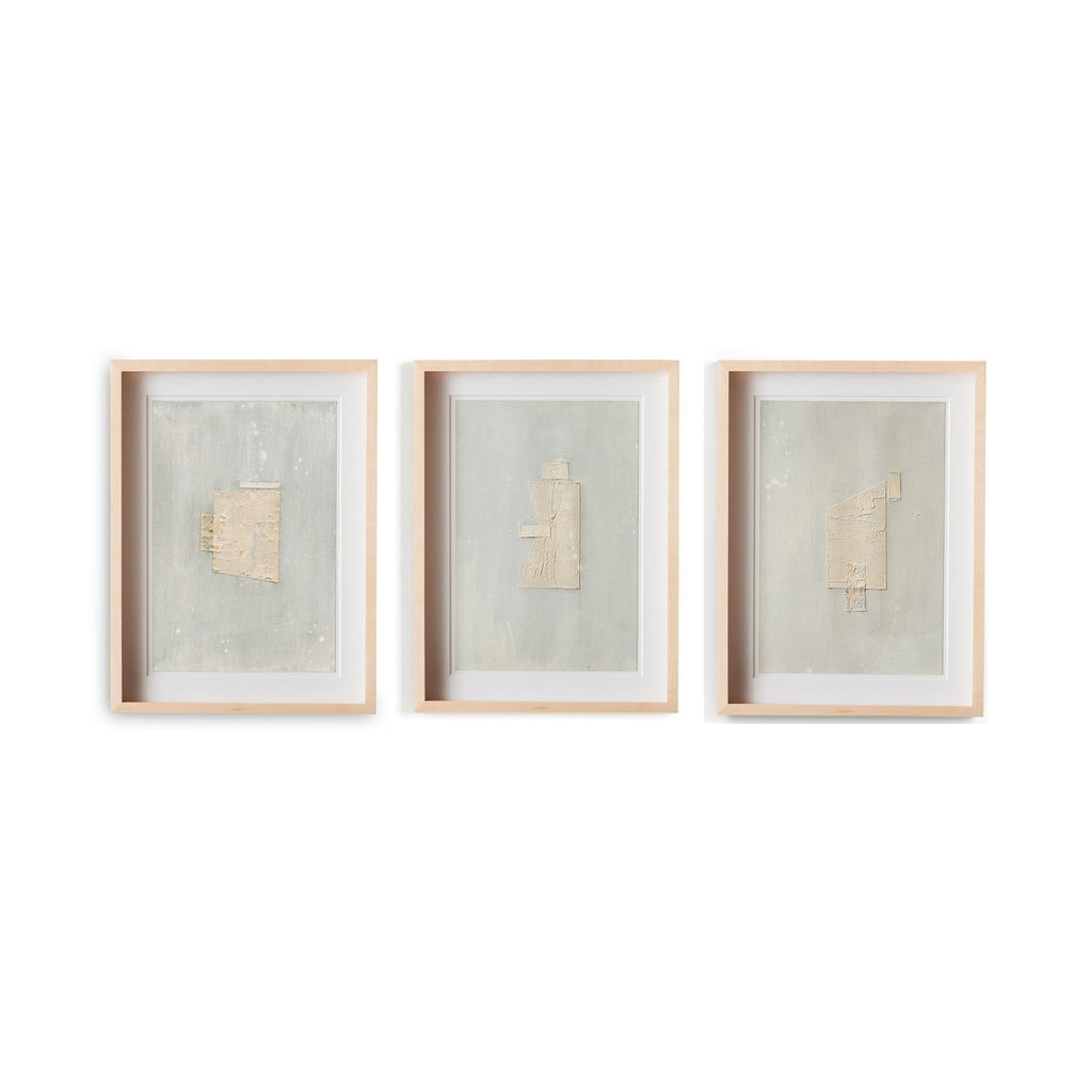 "Galactic III Tryptic" is a minimalist mixed-media collage by San Francisco artist Jade Dacay. Reflecting her Hawaiian roots, Dacay works high texture and calming hues into this three-piece set. This texture-enhanced artwork is handmade in Austin, Texas.