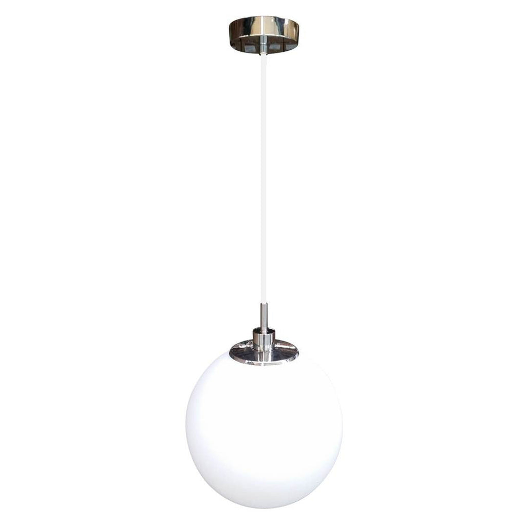 European hand blown triplex opal white glass with chrome trim and a cloth cord.