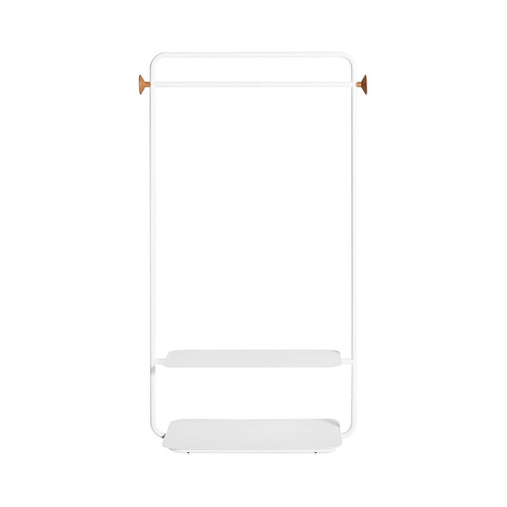 The Garden Party Garment Rack from Blu Dot provides a sophisticated storage solution for all your closet needs. With its durable powder-coated steel rack and shelves, combined with its elegant white oak knobs, it not only creates a chic and clean display for your outfits, but also a compact spot to store regalia with grace and ease.