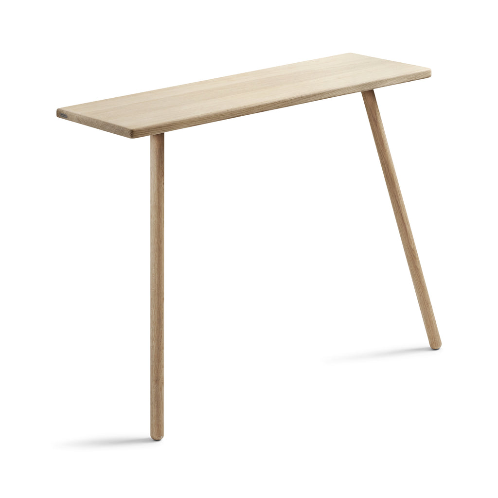 With a minimalist design and slender frame, the Georg Console Table from the Skagerak Collection by Fritz Hansen is a blend of both Nordic and Japanese design. Place in the hallway to act as a welcoming catch-all for keys and wallets, top with a mirror and storage pieces to act as a vanity in the bedroom or use as a tv stand in the living room. The two-leg design suggests almost an optical illusion as this console table leans perfectly against the wall.