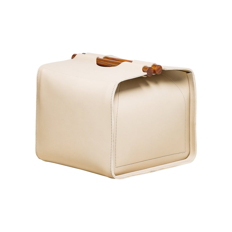 A celebration of luxurious natural materials, the Giobagnara x Rabitti 1969 Jota Storage Basket is a beautifully versatile piece from the Giobagnara and Rabitti 1969 collaboration. Expertly handcrafted in Italy, it is constructed from rich, structured saddle leather designed to develop a beautiful patina over time. The clean form is elevated by two striking handles of solid Palisander wood, showcasing its exquisite grain. A perfect fusion of impeccable craftsmanship and timeless design, it brings tactile warmth and understated luxury to any living space.