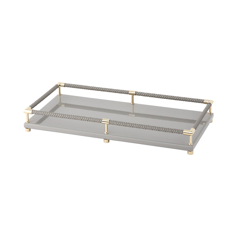 A stunning juxtaposition of sleek modernity and artisanal craft, the Giobagnara x Riviere Thea Lacquer Tray is a sophisticated design from the Riviere collaboration. Expertly handcrafted in Italy, this vanity tray features a flawless, high-gloss lacquered base. This modern foundation is beautifully enclosed by a meticulously braided leather railing, accented with polished metal details. The perfect fusion of contemporary sheen and heritage technique, it’s a chic and elegant stage for your most cherished accessories.