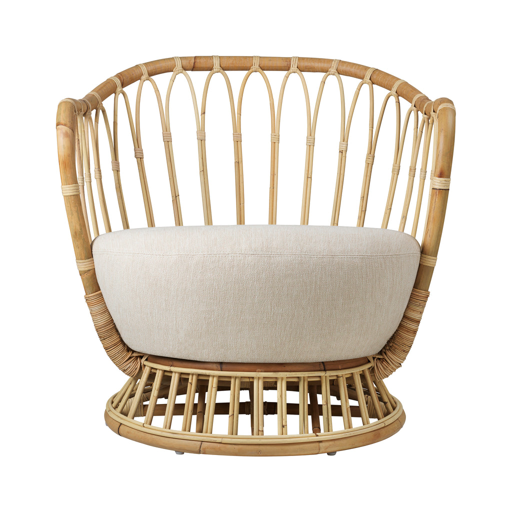 The Grace Lounge Chair from Gubi is inspired by the soft curves and materiality found in nature. The design of the soft upholstered seat is offset, as the top is slightly larger than the base, offering noteworthy aesthetic and lasting appeal. The backrest is comprised of long loops of hand-molded rattan that allow you to sit back and enjoy the beauty this chair has to offer.