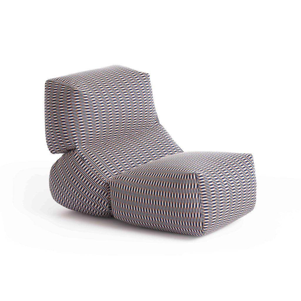 GRAPY, the iconic and ergonomic lounge chair by Kensaku Oshiro, evolves and conquers outdoor spaces. Accustomed to materials such as cotton, canvas and velvet, the elasticity and softness of GRAPY are now dressed in two new fabrics suitable for outdoor use. Outdoor and water repellent: Marquetry by Sunbrella and Meltemi Texture by Jover Decó.