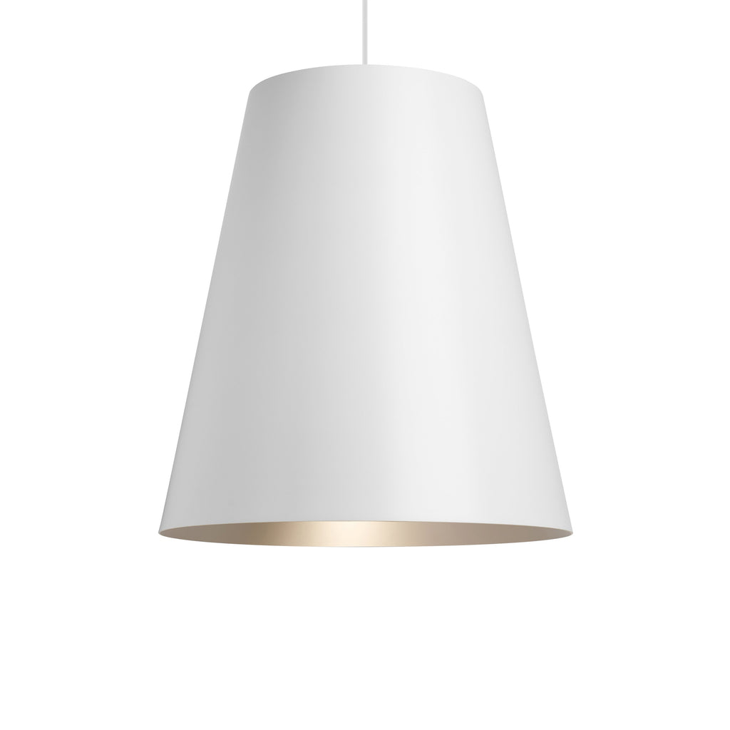 Grand scale tempered by elemental geometry define the Gunnar pendant light. Each spun metal shade is hand painted with choice of flawlessly smooth matte white or matte black exterior finish while the interior is highlighted in beautiful semi-gloss metallic hues including satin haze and satin gold. The silhouette of the architecturally significant shade stands over at 26” in height making it great for making a dramatic, yet functional statement as dining room lighting, entry lighting or living room lighting. Whether you select the efficient LED lamping or standard incandescent lamping, both options are fully dimmable to create the desired ambiance.