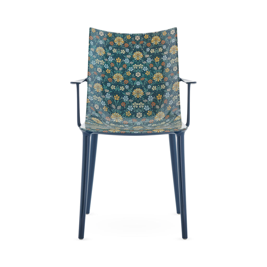 Experience elevated dining with the luxurious H.H.H. Graphic Impression Armchair from Kartell. This exclusive edition features stunning florals printed using graphic impression technology and is crafted in Kartell's sustainable polycarbonate. Its vibrant patterns and complementary colors create a unique and enchanting style, making a lasting impression on your dining space.