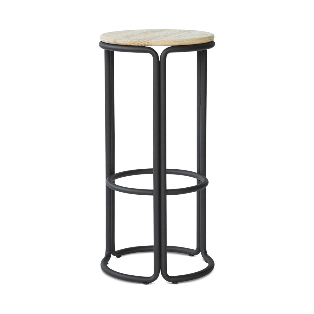 The HARDIE stool is a clean-lined and no-nonsense piece, its classic circular seat balanced by three bent metal tubular columns. Philippe Malouin, adds a practical flourish to the stool, coupling the columns so they join up to ensure a rigid, stable and hard-wearing signature to his design. The stool is a versatile addition to any space, and comes in three flavours: low, counter and bar height.