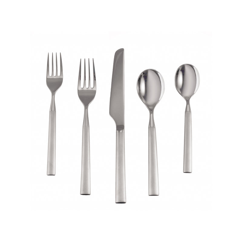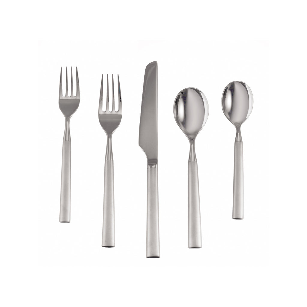 - Includes Dinner Fork, Salad Fork, Soup Spoon, Teaspoon, and Knife