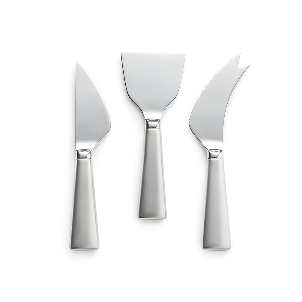 With its simple lines and a contemporary brushed finish, the Hartland Cheese Knife Set from Simon Pearce is an essential for modern entertaining. This exclusive three-piece set is designed with a hollow, lightweight construction that feels balanced and comfortable in the hand. It includes a fork-tipped spear, a small spade, and a flat knife, providing the perfect tool for any type of cheese. A fusion of simple design and specialized function, it’s a sophisticated and practical addition to any gathering.