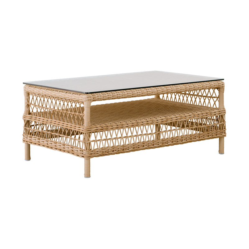 As a coffee table paired with one the Georgia Garden collection's many sofa options, the Hazel Coffee Table creates a cozy, summerhouse atmosphere. A continuous lower shelf adds storage space for books and newspapers. The Hazel coffee table is crafted from maintenance-free fibers that are durable enough for year-round outdoor use.