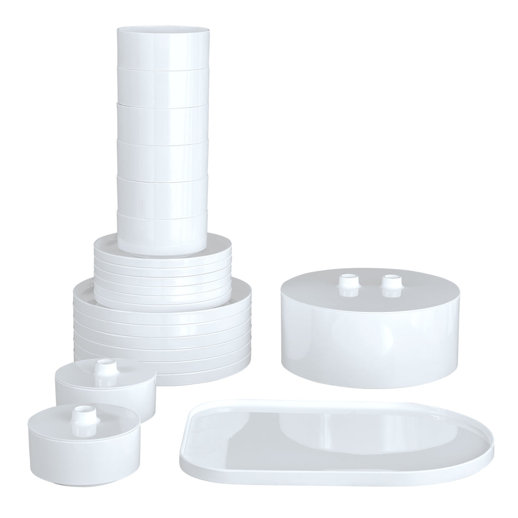 - Includes: (8) 5-inch Maxbowls, (1) 9.75-inch Maxbowl, (2) 5-inch Maxbowl lids, (1) 9.75-inch Maxbowl lid, (6) 9.75-inch Maxplates, (6) 7.5-inch Maxplates and (1) 9.75 x 14.5 Maxtray