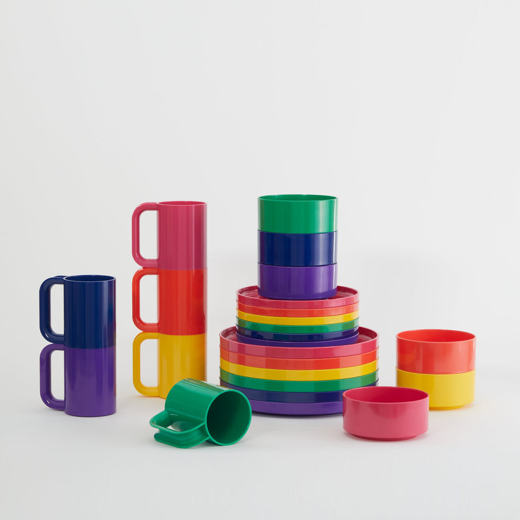 Make every meal an elevated dining experience with Hellerware Max Dinnerware (Set of 24) from Heller. This six place setting set offers crisp, proportioned shapes and glossy rainbow hues that transform any tabletop into a celebration. The durable plastic forms ensure effortless use indoors and out, while making them easily recyclable at the end of their life cycle. Designed and loved by modernists worldwide, Hellerware brings happiness to every meal.
