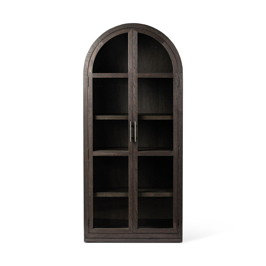 Introduce sophistication and elegance into your space with the Hepburn Cabinet from Four Hands. Its beautifully arched design, flush plinth base, and dark oak finish add a touch of luxury. Featuring generous shelving, the tempered glass front allows you to display your cherished possessions - reflecting your refined taste to all.