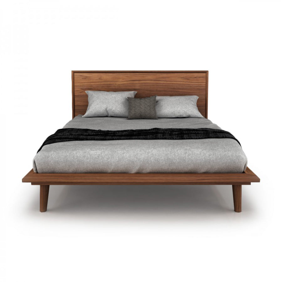 Craft the bedroom of your dreams with the luxurious Herman Bed from Huppe. Featuring angular, slender legs crafted from solid black American walnut, this bed exudes sophistication and elegance. The frame, also made of solid American walnut, is cut at a 45 degree angle for a soft, organic look. Experience the ultimate in refined design and comfort.