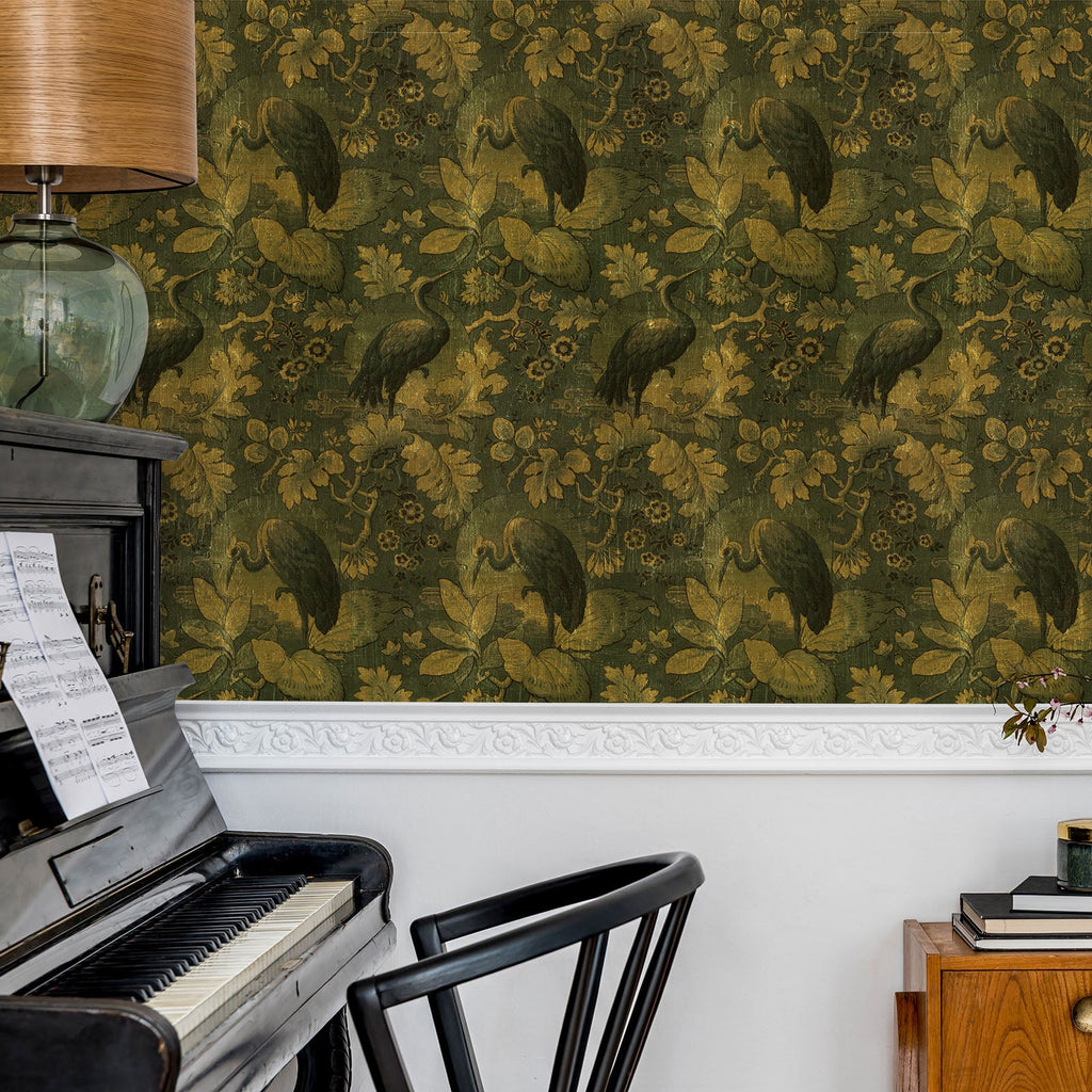 This Heron wallpaper is an interpretation of ancient old “high society” wall decorations.