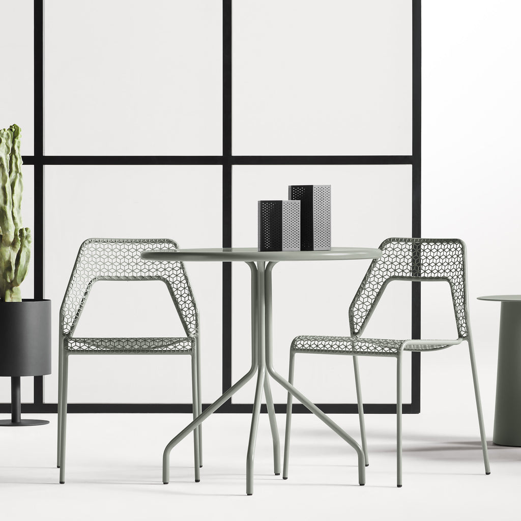 Traditional patio dining furniture gets a modern update with the Hot Mesh Dining Set from Blu Dot. Proportioned for a patio or small deck, this sturdy and stylish powder-coated steel set features tubular legs and a geometric mesh inlay creating a striking profile in any dining environment. With your choice of two chairs or four, you can effortlessly create the ultimate dining destination whether you are setting the scene in your garden oasis or putting together a poolside hangout for you and your family.