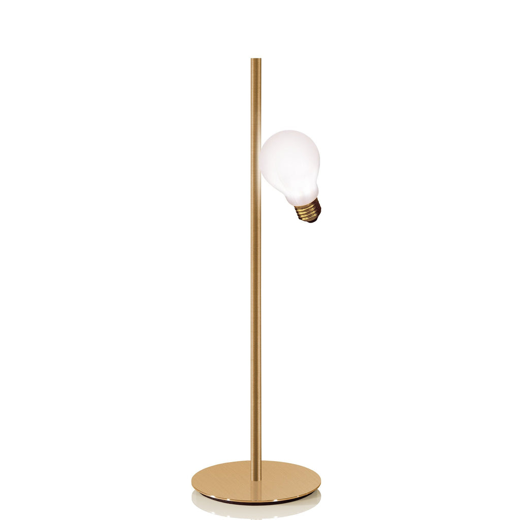 They say inspiration comes on like a lightbulb going off in your head. Idea strips away design, leaving the essence of light; a three-dimensional “bulb” and a brass-finish screw base, magically suspended on a wall-base that comes in a brushed brass, mirrored, or white mattee finish. Also available in a recessed wall lamp version that plays on the unexpected, ironic effect of an idea popping up when, and where, you least expect it.