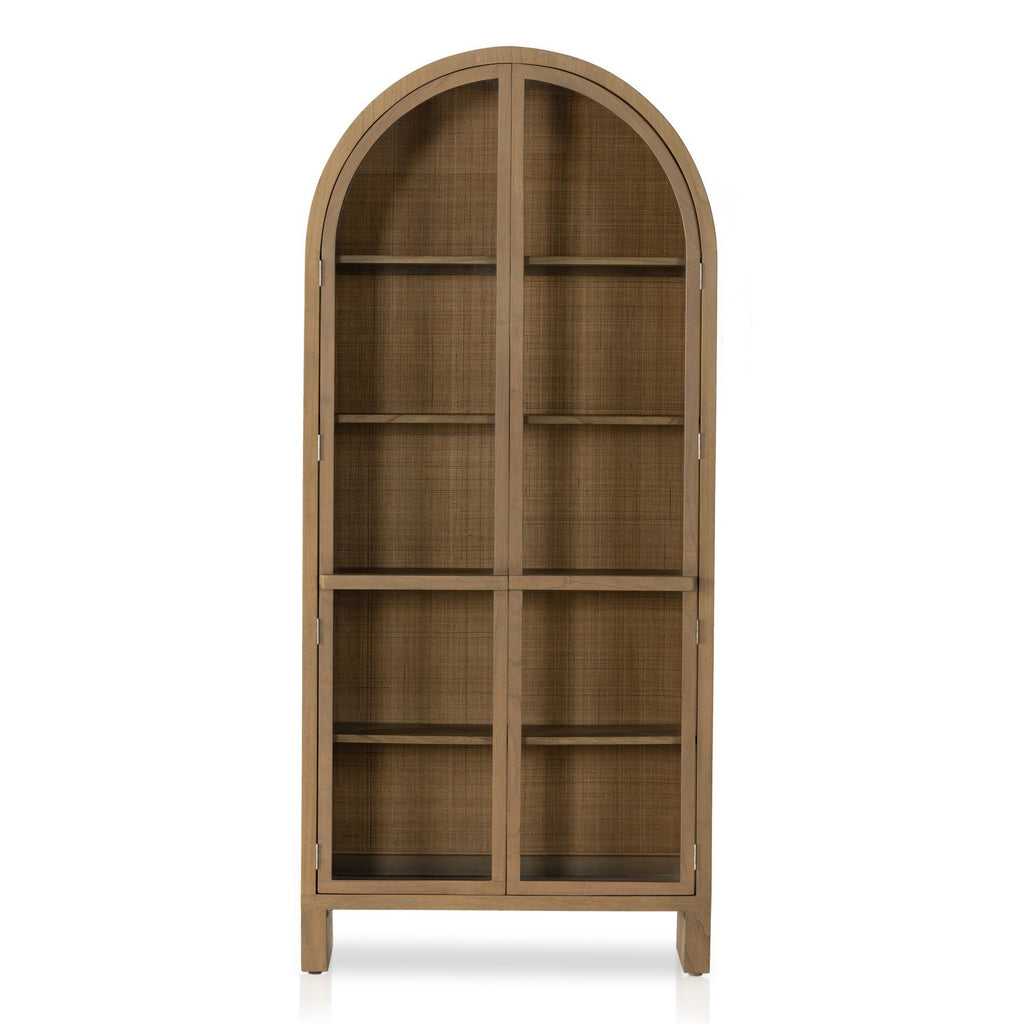 Curate your space with help from the Ilana Cabinet from Four Hands. Featuring burnished solid mindi and intricate woven cane details, the dramatic arch and glass-front design add sophistication, while the natural textures provide a unique touch. Ideal for displaying books and decor in a living room or fine china in a dining room, this versatile cabinet does it all.
