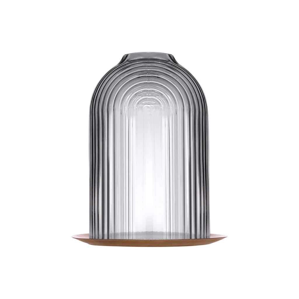 Introducing the Ilo Candleholder from luxury brand Nude Glass, perfect for creating captivating displays both indoors and outdoors. Elegant and eye-catching, this exquisite piece showcases a hand-engraved ripple pattern cradled within a clear crystal dome, exquisitely juxtaposed against a light-reflective copper base. With its unparalleled craftsmanship, the Ilo will make a statement in any home.
