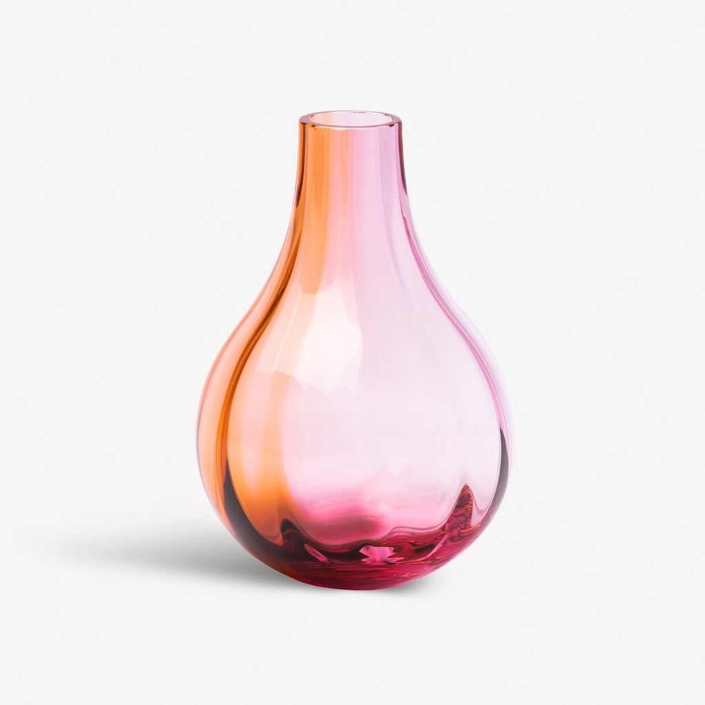 Handblown in Sweden, the Iris Vase from Kosta Boda boasts a colorful underlay and unique optical pattern, created using a special glass technique. Chic, yet playful, this piece adds life and vibrancy to your home, with carefully selected color pairings reminiscent of delicate jewelry. A must-have for any quirky and fun interior decor.