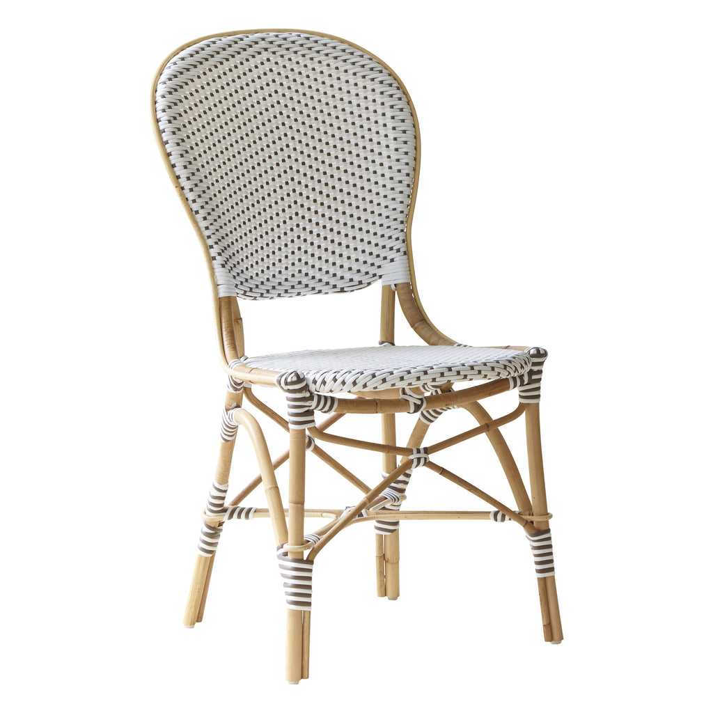 The Isabell Side Chair by Sika Design is a modern revival of the classic French bistro chairs found in historic cafes and restaurants in Paris. Each side chair is handmade from Malacca cane rattan paired with ArtFibre™, an exclusive Sika material made from maintenance-free polyethylene. Visible striped marks in the rattan derived from the natural cane bending process add authenticity and organic appeal to each Danish-designed woven chair. Gently sloped arms and wide seats make these chairs a comfortable indoor seating choice for both residential and commercial dining.