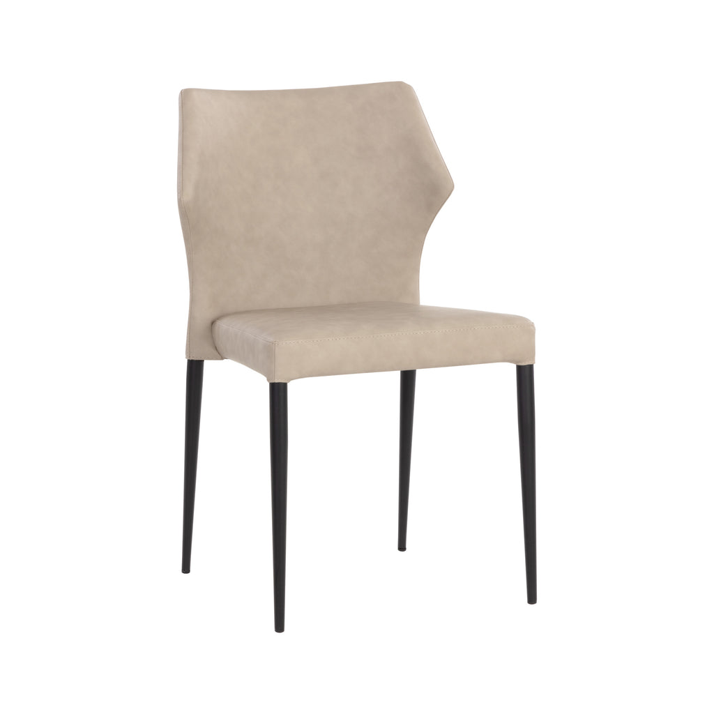 Indulge in luxury dining with the James Stackable Dining Chair (Set of 2) from Sunpan. Crafted with durable faux leather, this chair is both stylish and easy to care for. The uniquely shaped backrest adds flair to any dining space, creating a subtle, yet striking statement. Each piece is unique, with characteristics like color variations and light scratches adding to its elegant appeal.