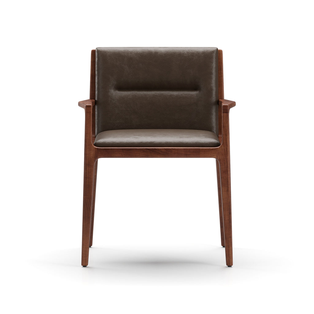 A study in serene harmony, the Jona Dining Armchair from Stellar Works is a sophisticated and minimalist design from Yabu Pushelberg. This elegant armchair is built on a minimalist solid wood frame, complemented by upholstered panels that add depth and comfort. The open posture creates an inviting seat, with generous proportions that welcome all to the table. A fusion of sculptural craftsmanship and refined simplicity, it’s a confident and memorable choice for any contemporary interior.