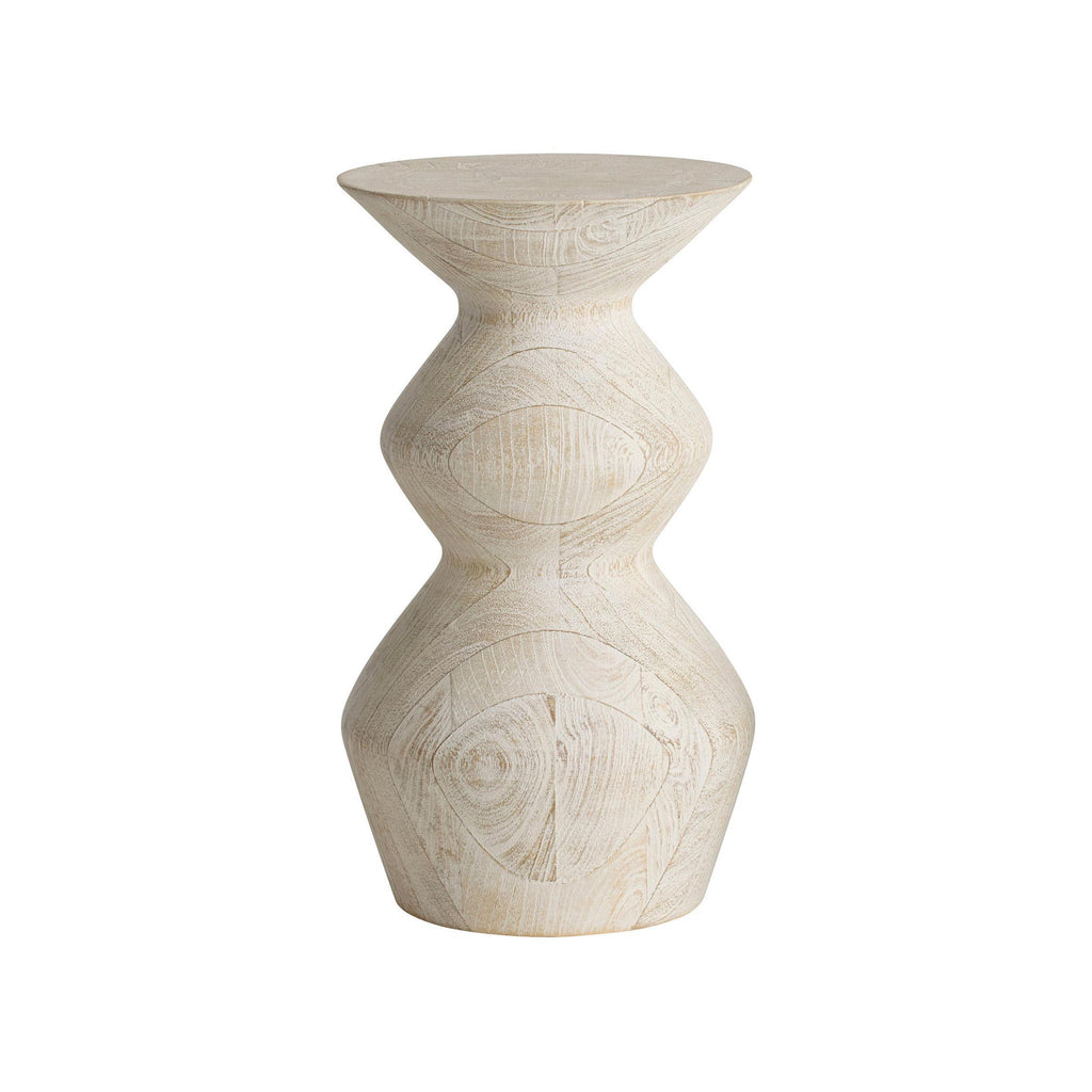 The Joyce Drink Table from Arteriors is a sculptural accent piece that brings organic elegance to any space. Crafted from whitewashed mango wood, its curvaceous form is accented by hand-carved lines that enhance its fluid silhouette. Reminiscent of natural wood sculptures found along the coast, this feminine, airy piece makes a beautiful companion to a sofa, lounge chair, or reading nook.