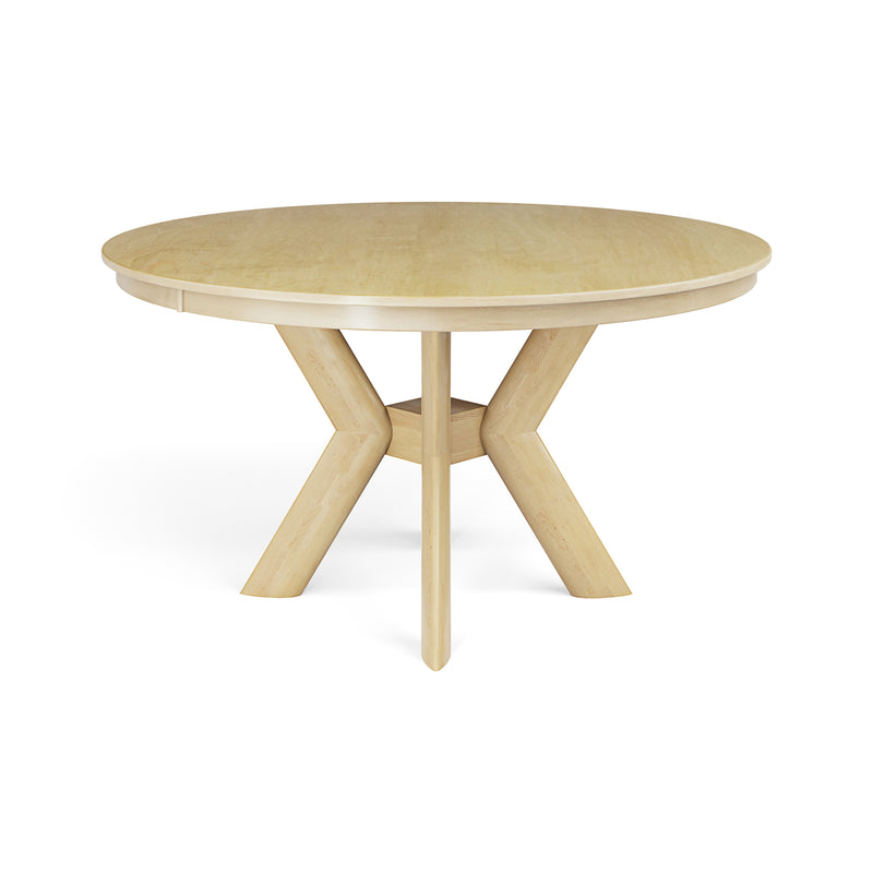Elevate your dining experience with the K-Base Round Dining Table from Saloom Furniture. Handcrafted from solid hardwood, this contemporary pedestal table is finished with a smooth solid maple top, letting the natural wood grain shine through. Combining a modern silhouette with the warmth of solid wood tones, this table is an elegant centerpiece for your modern dining room.