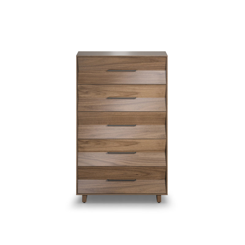 A sleek and space-efficient vertical storage solution, the Kava 5-Drawer Chest from BDI brings intelligent function to the modern bedroom. This chest offers spacious storage with five full-extension, soft-close drawers. For added peace of mind, a STURDY-compliant interlock system prevents tip-overs. The top drawer includes a removable, velvet-lined tray for smaller essentials, while textured interiors add a refined touch. A fusion of minimalist style and smart safety, it’s a beautifully designed and functional piece.