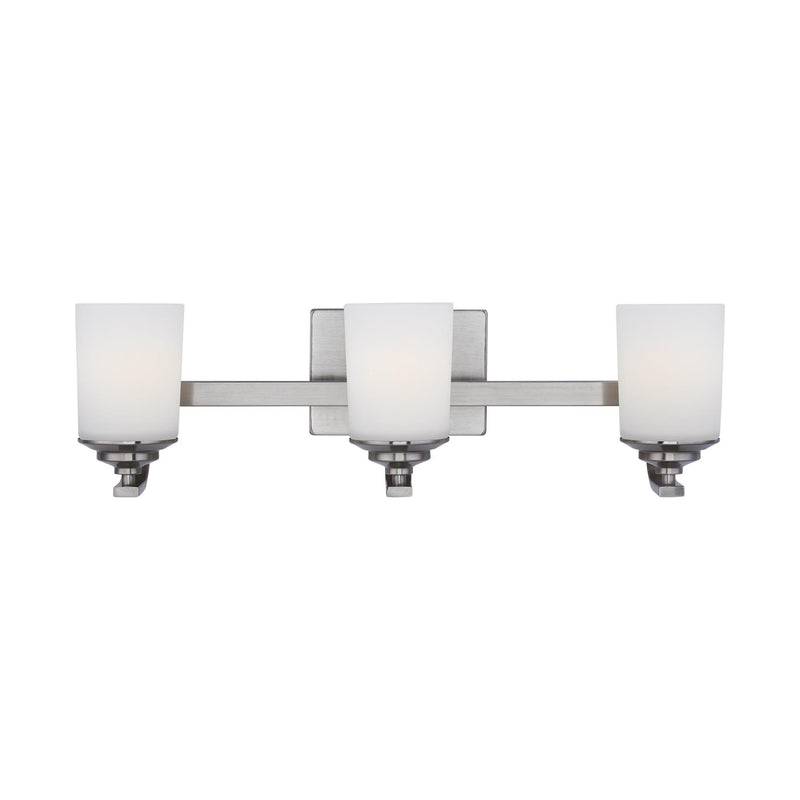 The Sea Gull Collection Kemal wall sconce in midnight black or brushed nickel provides abundant light for your bath vanity, while adding a layer of today's style to your interior design.