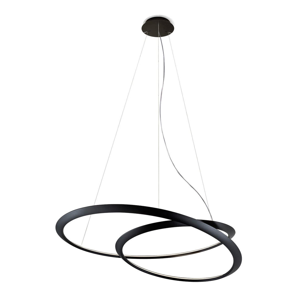 Pendant lamp in epoxy-coated aluminum, in matte white or black. Available in uplight and downlight versions for widespread and comfortable lighting. The endless line is made through a 3-dimensional deformation process of extruded aluminum, designed using the mathematics of Moebius ribbons.