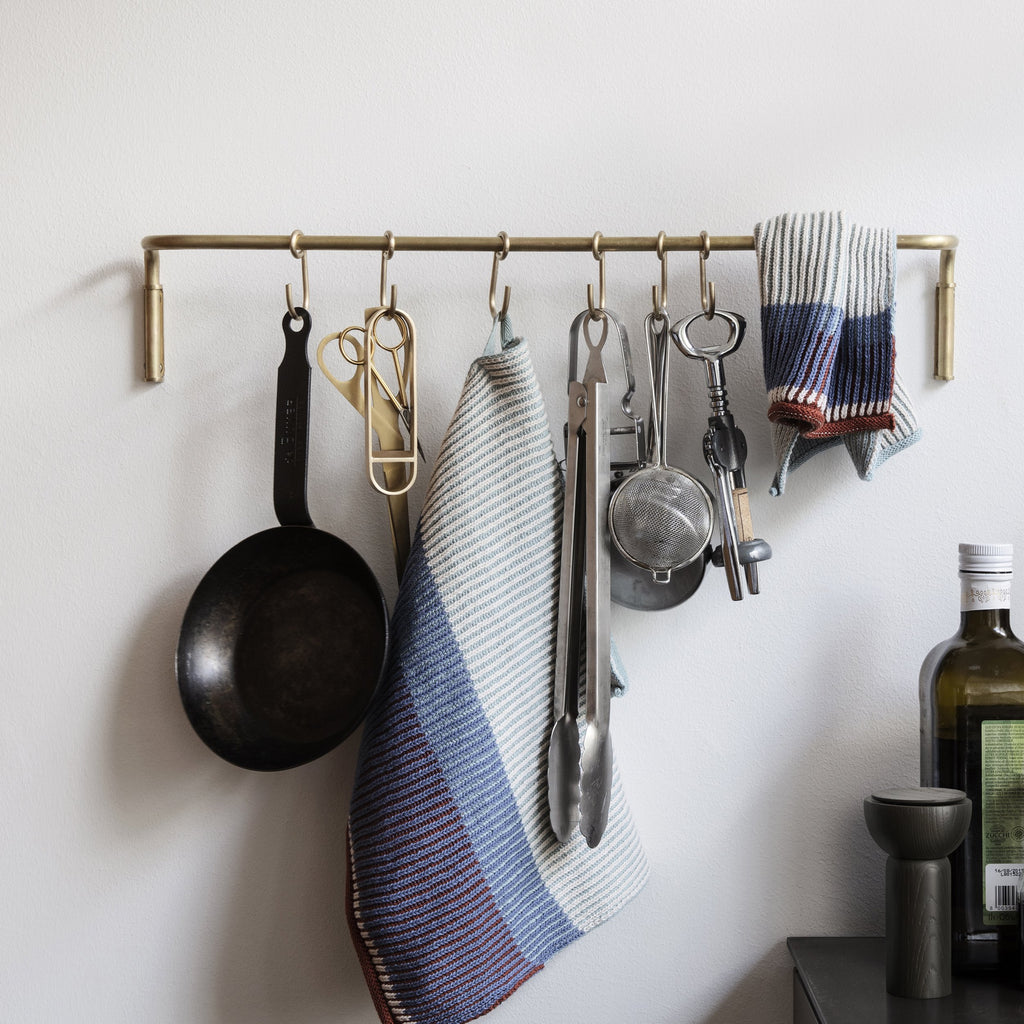 A light and beautiful storage solution for your kitchen tools and textiles, the kitchen rod lets you clear the table easily. Use it with the hooks to make room for more – use one of the hooks for decorations or memorabilia to mix up the expression of your rod. The kitchen rod is made of metal with a black coating and comes with six hooks.