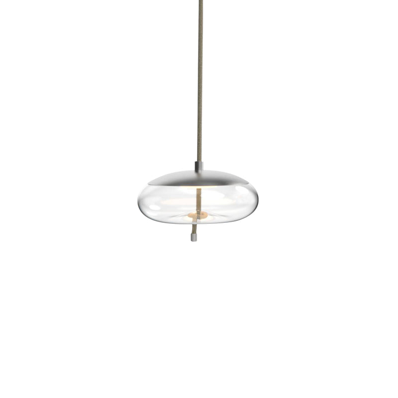 Striking in its contrasts and rich in material detail, the Knot Disco LED Pendant Light from Brokis blends delicate craftsmanship with a bold, industrial edge. Designed by Chiaramonte Marin, this sculptural fixture features a wide, handblown glass dome dramatically cinched by a thick, braided rope that appears to tension the form from within. The integrated LED casts a warm, ambient glow that plays beautifully against the transparency or tint of the glass. At once refined and raw, Knot Disco brings tactile elegance and visual intrigue to any contemporary interior.