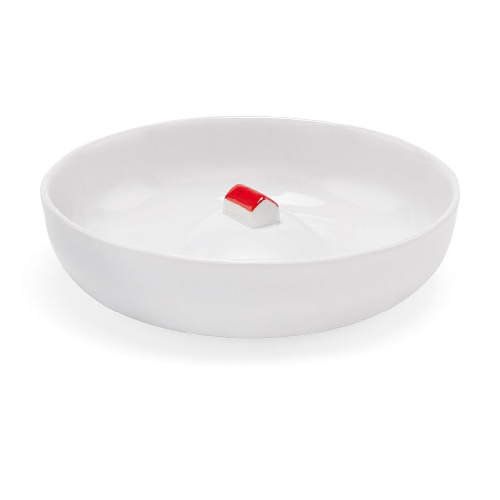 A whimsical dish for serving or dining, the La Maison Inondee Bowl from MoMA adds a pop of playful decor to your favorite tablescape. Crafted from ceramic, with a petite red-roofed home in the center, this bowl is ideal for serving nuts or displaying fruit. Fill with your favorite treats and put on display as part of a dining room centerpiece or entryway accent.