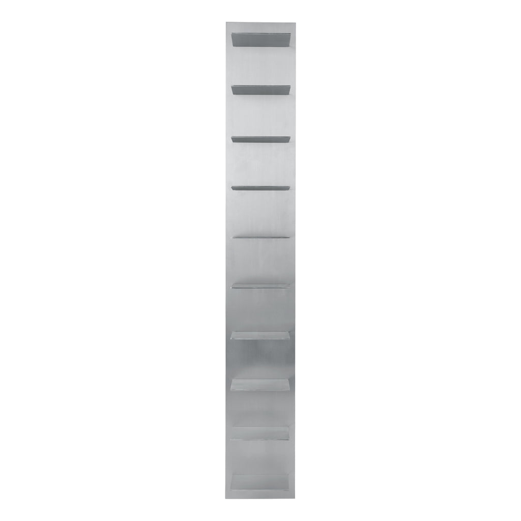 A clean and considered approach to vertical storage, the Lager Tall Wall Shelf from Ferm Living is a study in minimalist design. This sleek, elongated shelf is crafted from brushed aluminum, with subtle industrial cues that give it a refined, utilitarian feel. With ten individual shelves, it provides a generous amount of space for displaying books, collectibles, and other favorite objects. A fusion of simple form and quality material, it’s a versatile and sophisticated storage solution for any contemporary space.
