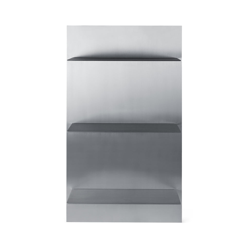 Elevate your storage potential in any space with the Lager Triple Wall Shelf from Ferm Living. Crafted from durable aluminum with an industrial and brutalist aesthetic, this shelf offers both style and functionality for everyday living. With an easy wall installation using a French cleat system and uniform spacing for stacking, it's the perfect solution for a cohesive and tall library display, or convenient spot to store out-the-door essentials.