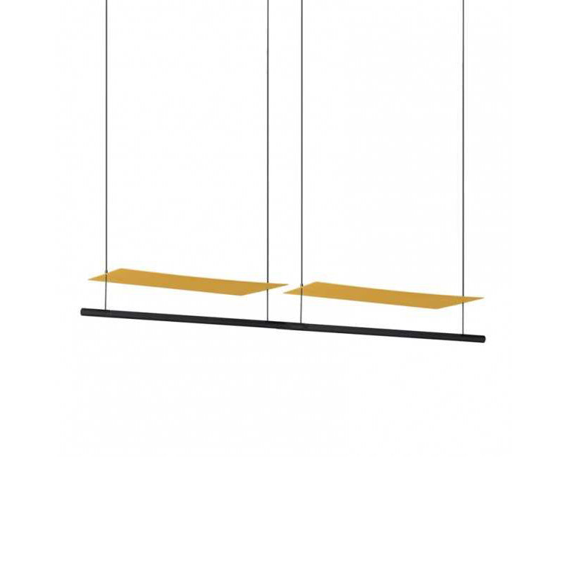 Illuminate your home with the modern and innovative Sistema Lamina Dorada Linear LED Pendant Light from Santa & Cole. Crafted from metal, the flattened matte gold shade creates captivating concavities, making a visually striking effect. Its flexible linear configuration offers versatile and customizable designs, showcasing elegant and clean lines in various dimensions and tones.