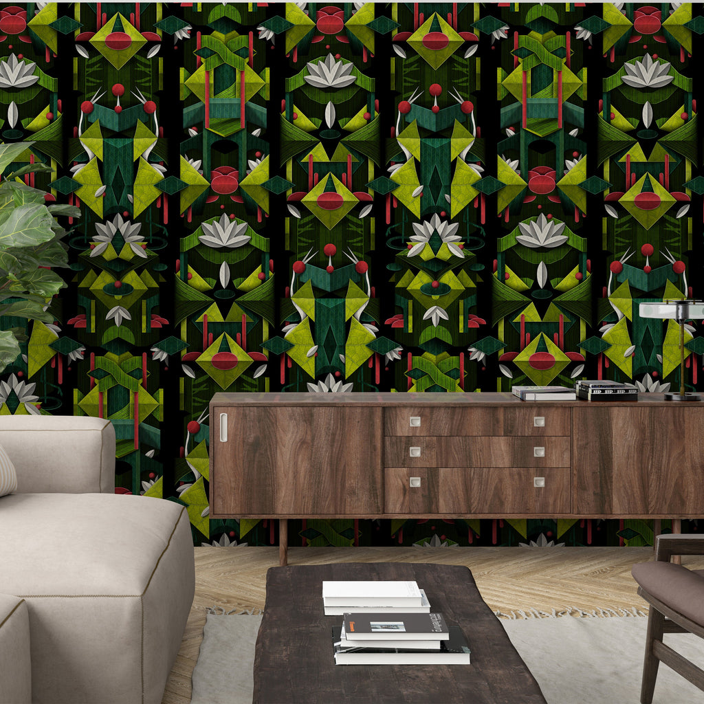 Pink, yellow, orange and green leaves mixed together to new compositions. Explore an unexplored world in the wallpaper series “Forest Unfold”. Suzan Hijink's “Forest Unfold” designs represent manipulated close-up images of leaves.