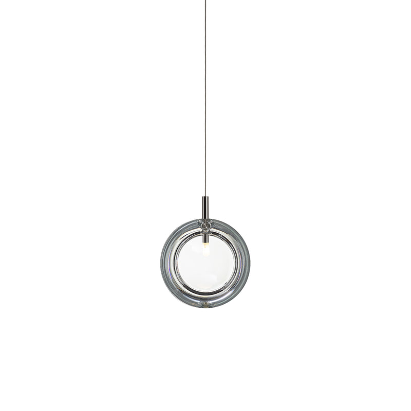 Indulge in the mesmerizing illumination of the Lens LED Pendant Light from Bomma. With two harmoniously encapsulated lenses, this light creates a symphony of tones and a unique lighting experience. Using a special hand-painting technique, the lighting's hypnotic design is elevated for any project or purpose. Its elegant design and delicate canopy make this collection a notable addition to any interior.