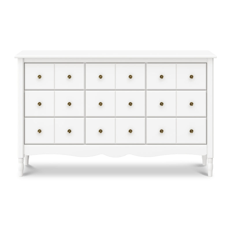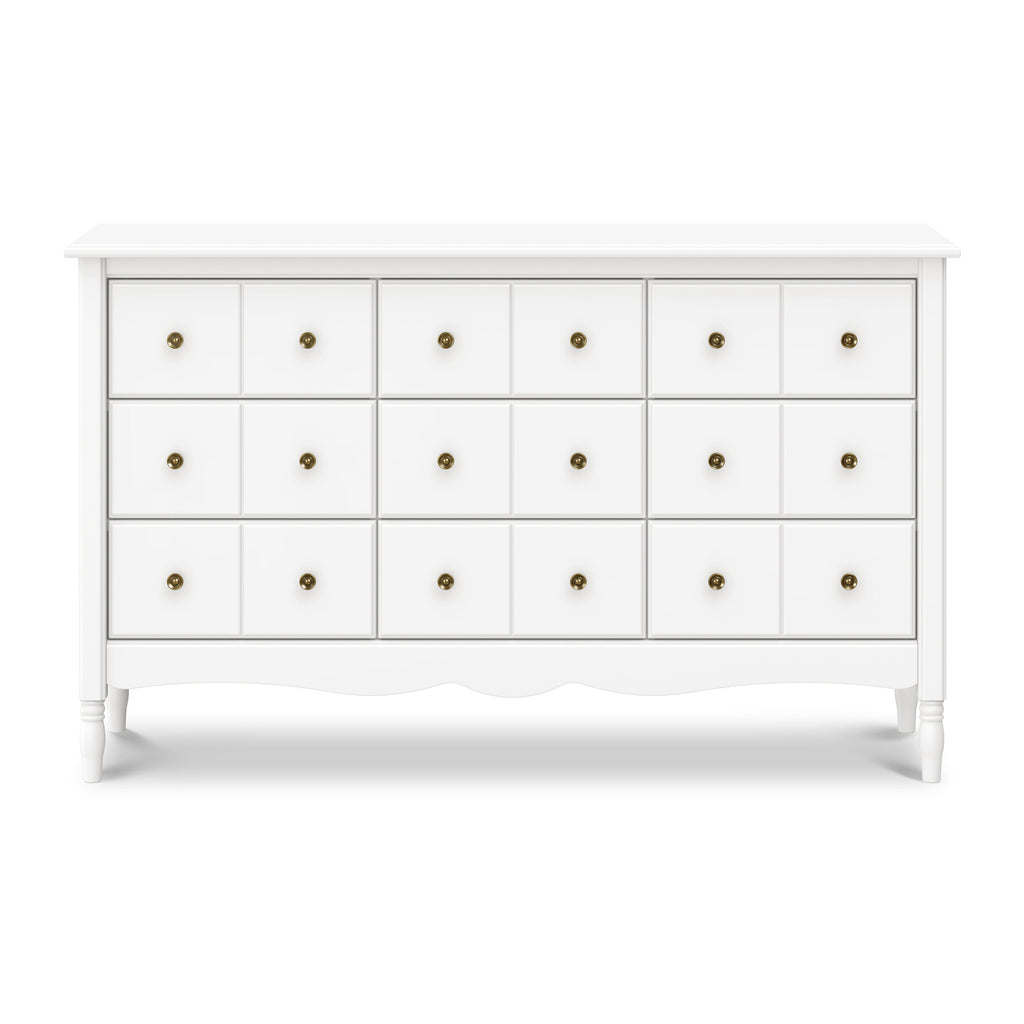 With its timeless vintage charm and generous storage, the Liberty 9-Drawer Assembled Dresser from Namesake is an heirloom-quality centerpiece for any nursery. This beautiful dresser is defined by its thoughtful details, from the gracefully scalloped apron and classic tapered feet to the apothecary-style drawer fronts. Consciously crafted from sustainable woods with a non-toxic finish, it's GREENGUARD GOLD Certified to support cleaner indoor air. Nine smooth-gliding drawers provide ample space for all of your little one's essentials, creating a beautiful and organized room for years to come.