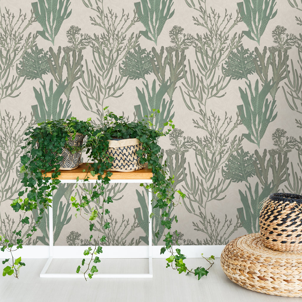 An outstanding wallpaper, inspired from the underwater ecosystem, on a light background, which will help you achieve a beautiful and natural look in every environment.