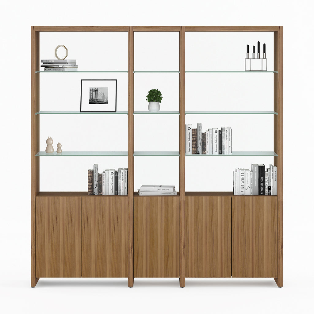 Ensure your home remains neat, tidy and well-organized with the BDI Linea Shelf 5802 + 5801A + 5802A Shelving System. This unique shelving unit sits flush to the wall and makes any space feel more organized. This indoor shelving system is designed with rich polished tempered glass shelves and a wire routing channel that makes cord management a breeze. From the soft-close doors to the strong wood material, this shelving unit will help keep your home neat and more functional for the long haul.