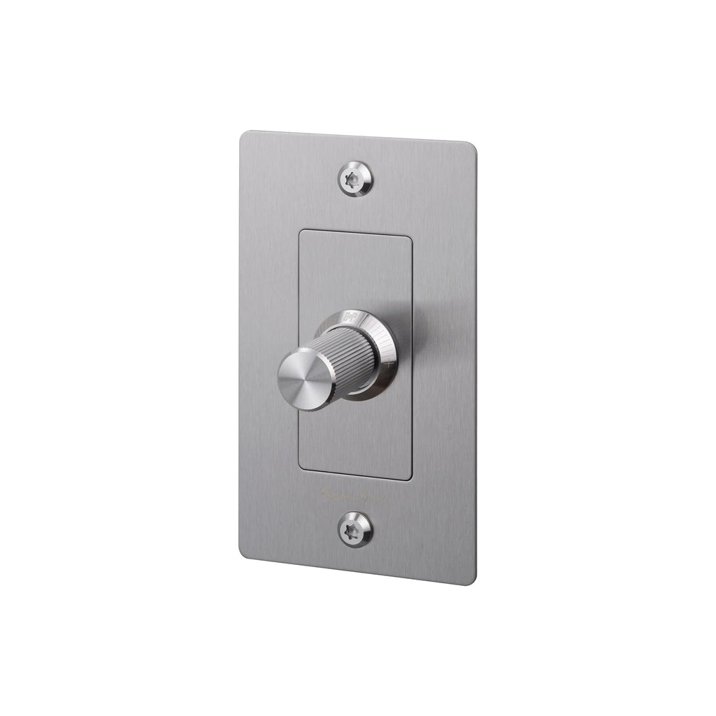A sophisticated piece of functional hardware, the Linear Dimmer Switch from Buster + Punch elevates everyday details. This dimmer is defined by its solid metal knob, which features the brand's newest signature, a refined linear knurl pattern, bringing a touch of modern, industrial elegance to any interior.