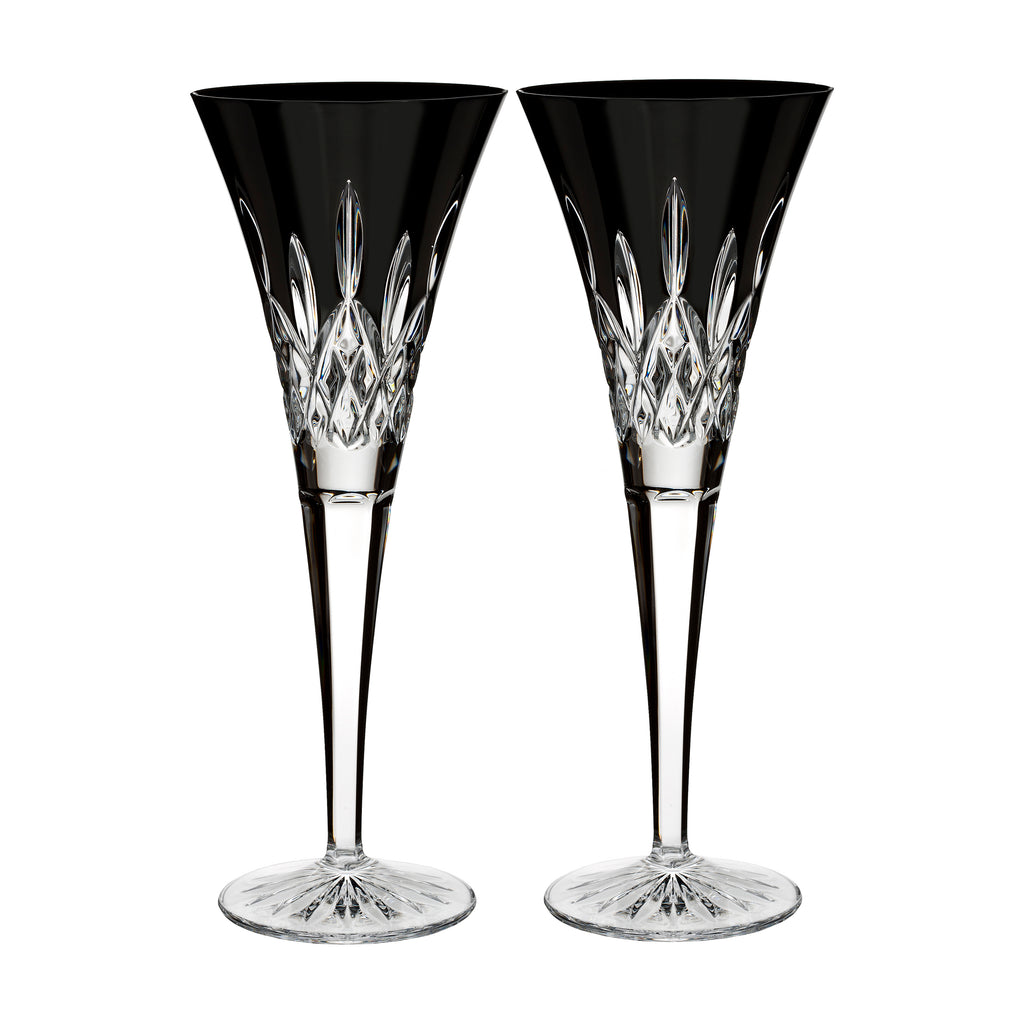 Sip in style with the Lismore Champagne Flutes (Set of 2) from Waterford. This set of two flutes features the beloved Lismore pattern in striking black, adding a daring touch to your tablescape or festive celebrations. Crafted from sparkling clear crystal, these glasses offer a luxurious and unique drinking experience. Elevate your favorite bubbly or sparkling cocktail with these elegant and sophisticated flutes.