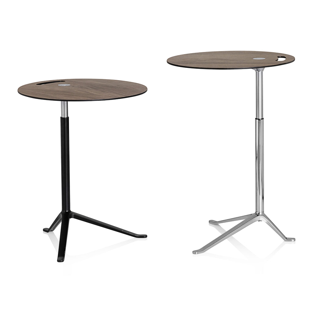 An aesthetically pleasing side table offering new dimensions of functionality, the Little Friend Side Table from Fritz Hansen is a flexible solution for modern living. Sitting atop a sturdy steel base, the contrasting laminate top is ideal for resting a cup of coffee or personal laptop. Ideally placed next to a sofa or lounge chair, the adjustable height makes it as versatile as it is stylish.