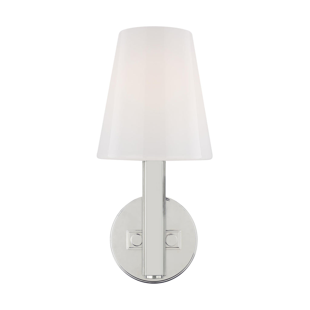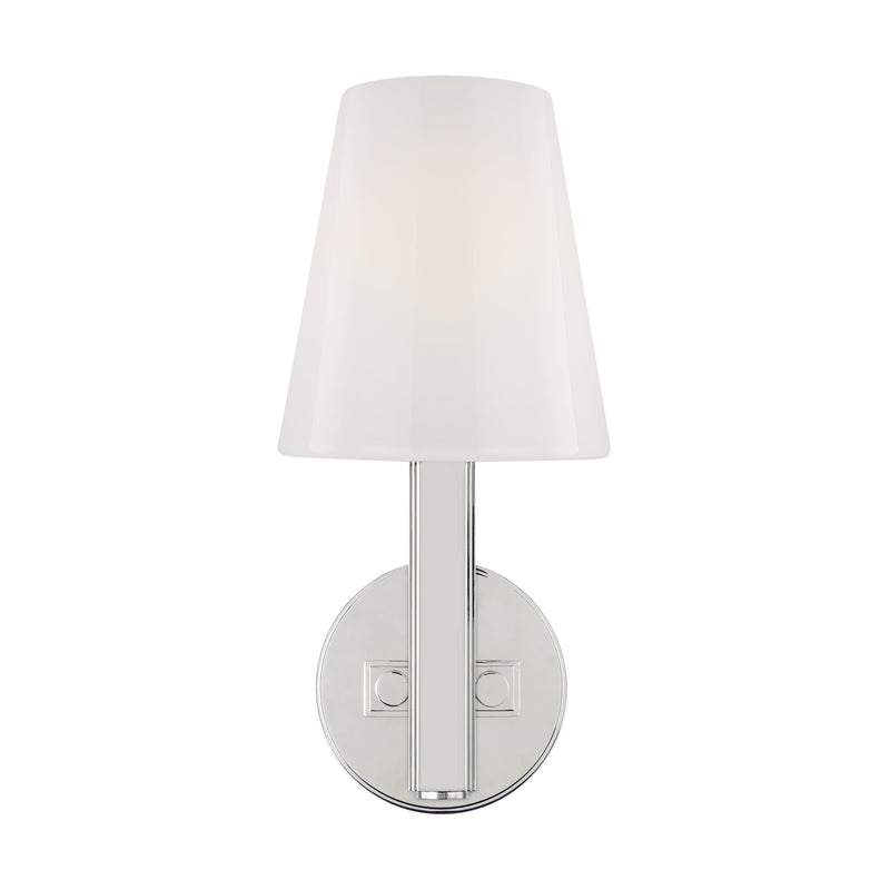 Mirroring the masterful design aesthetic of bridging traditional and modern styles, the Thomas O'Brien Logan TV1111 Wall Sconce is a compact, yet visually striking luminary ready to brighten up any room in your home. Featuring a tapered milk white glass shade atop a slim arm set into a round backplate, this versatile wall sconce is suitable for a wide variety of interiors. Available in several classic finishes, this sconce is perfect for damp locations like a bathroom or well-covered patio.