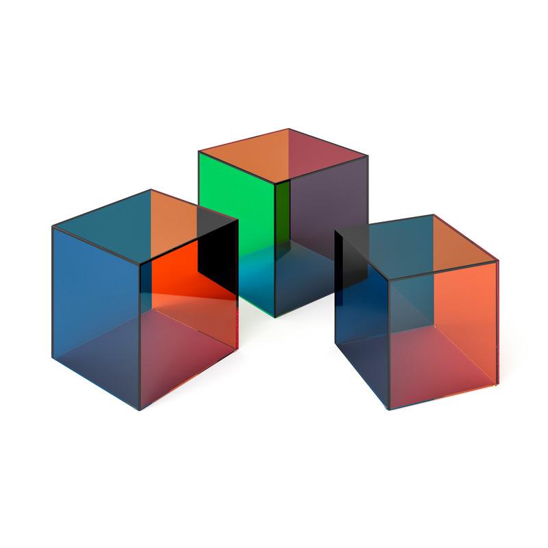 Add a pop of color and playfulness to any room with the Luce Side Table from Cappellini. Made from extra-clear stratified colored glass, this range of small tables doubles as a chic display for objects or magazines when placed with the open side upwards or sideways. Available in various sizes and vibrant colors, use as a singular statement piece or cluster together for a unique display.