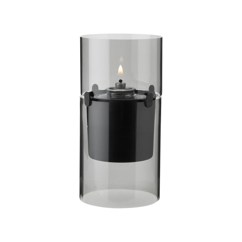 The combination of the characteristic colors and the simple shape of the glass, makes the Lucie hurricane synonymous with a modern decor. The flame dancing behind the glass creates a beautiful and pleasant light in the room. Lucie is made from glass in different, beautiful colors, with inspiration from the nature that surrounds us; ‘Amber’ as the gem that has lain in the sea for thousands of years, ‘Azure’ as the deep blue color of the sea, and‘ Smoke ’as the smoke from a recently extinguished bonfire. Lucie can be used both outdoors and indoors and has a simple and aesthetic expression, where color and simple function are allowed to be at the center. The light source for Lucie hurricane is 100% vegetable oil candles, which are sold separately.