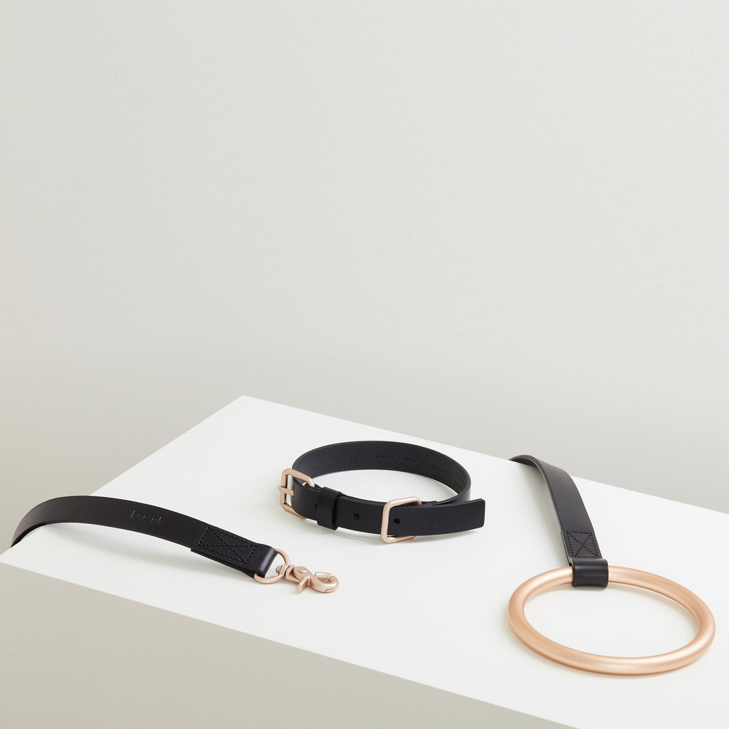 Combining utility with modern aesthetics, the Lumi Leash and Collar Set from Boo'Oh Pets is a sophisticated, yet simple design ready to make walking your dog a fashionable event. Handmade from the finest Italian Buttero vegetable-dyed leather, the leash and collar are accented by lightweight aluminum that has been treated with an anodization process, creating a satin luster for a more luxurious look. The optional Toto bag is constructed from a single piece of leather and ready to seamlessly integrate with your leash to hold all your furry friend's treats and waste bags.